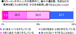 使用中に痛みや違和感、充血などの異常を感じても、そのままカラーコンタクトレンズの使用を続けていることもわかった。